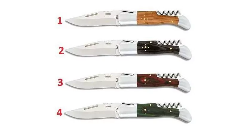 | Material de la empuñadura | 1= Madera de Olivo, 2= Micarta Negra, 3= Madera Roja, 4= Micarta Verde |