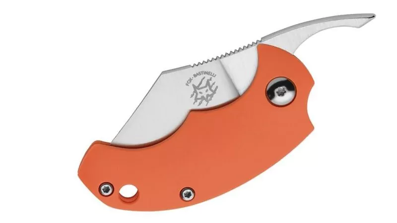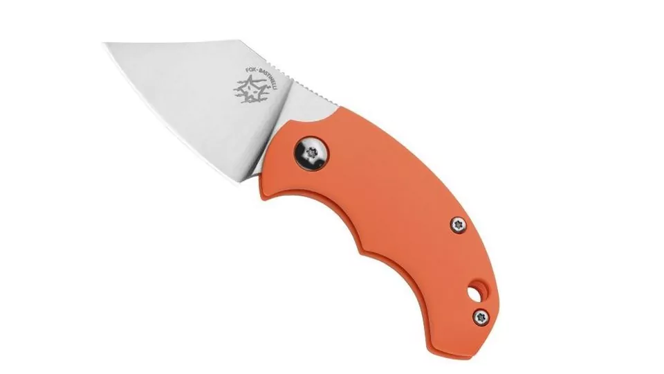 Navaja Fox BB Drago es una navaja compacta para uso diario. Diseñada por Bastinelli. Hoja acabado satinado, en acero Böhler N690Co. Empuñadura de FRN naranja “Fibra de vidrio reforzada de nylon”. Sistema de apertura con una sola mano, mediante el flipper frontal, pero no tiene un mecanismo de bloqueo. Se trata de una Friction Folder. Debido a su tamaño parece inofensiva y amigable. ¡Es muy práctica! Funda de piel negra.